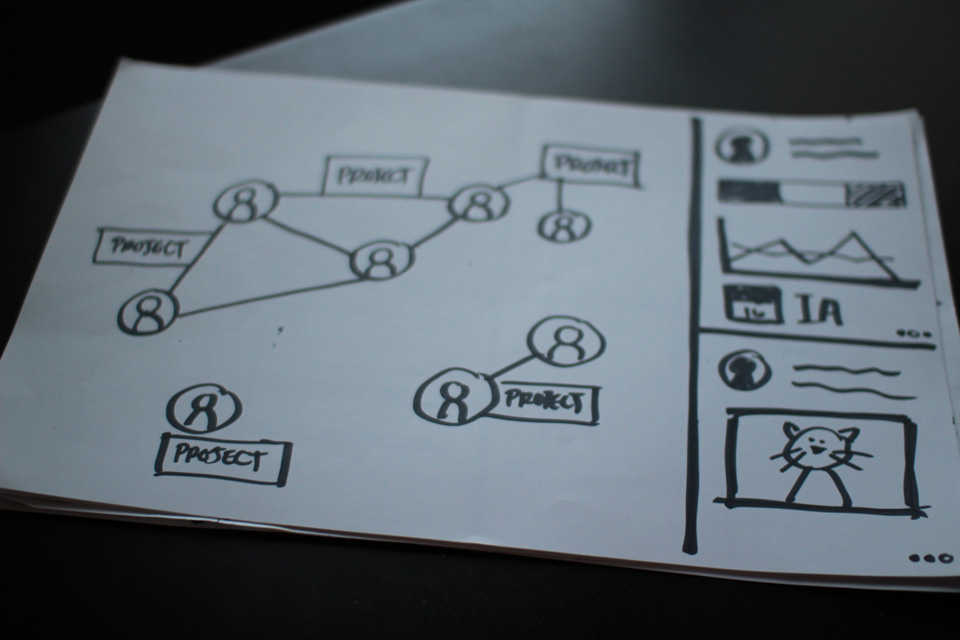 Brainstorming with a team of 12 people can be like herding cats. Luckily we were all able to be sit silently for a half hour and sketch our ideal interfaces. I like to have participants, especially peer designers, dive into an 11x17 piece of paper with a sharpie. This gets their initial good and bad ideas figured out before (optionally) pitching it to the team.